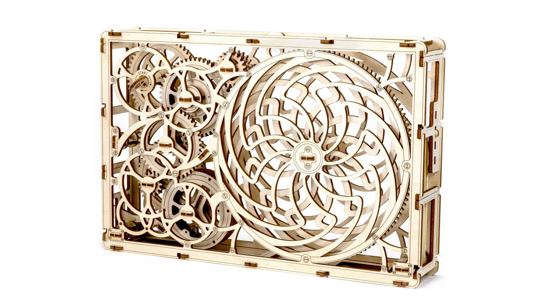 Kinetický obraz není jen statický model, ale má zaujmout a zaujmout. Model poháněný gumovým motorem a spouštěným startovacím klíčem ožívá a jeho prvky se pohybují v pozoruhodném vzoru, který vystihuje podstatu kinetického umění. Naše laserem vyřezávané dřevěné modely kombinují nejvyšší přesnost s jednoduchou montáží, která je prostě radost. Díky chytrým funkcím, které oživují dřevěné modely, nabízejí fascinující zážitek.