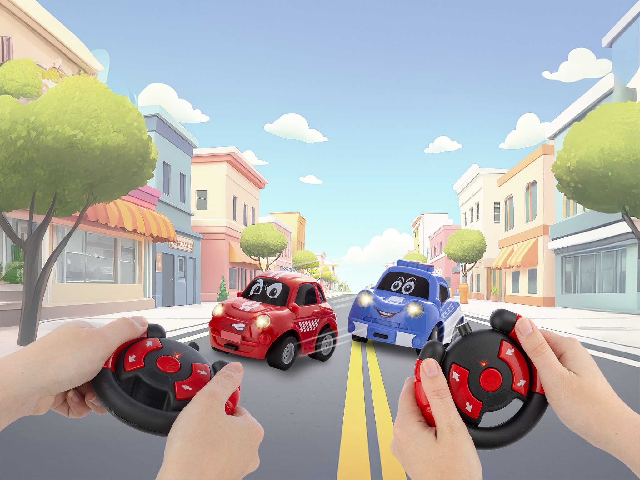 Robustní vozidla jsou dokonale přizpůsobena potřebám malých závodníků. Díky promyšlené konstrukci zůstávají vozy stabilní a bezpečné i při divokých jízdních manévrech. Technologie 2 GHz umožňuje ovládat obě vozidla současně a bez rušení – ideální pro vzrušující honičky ve dvou.